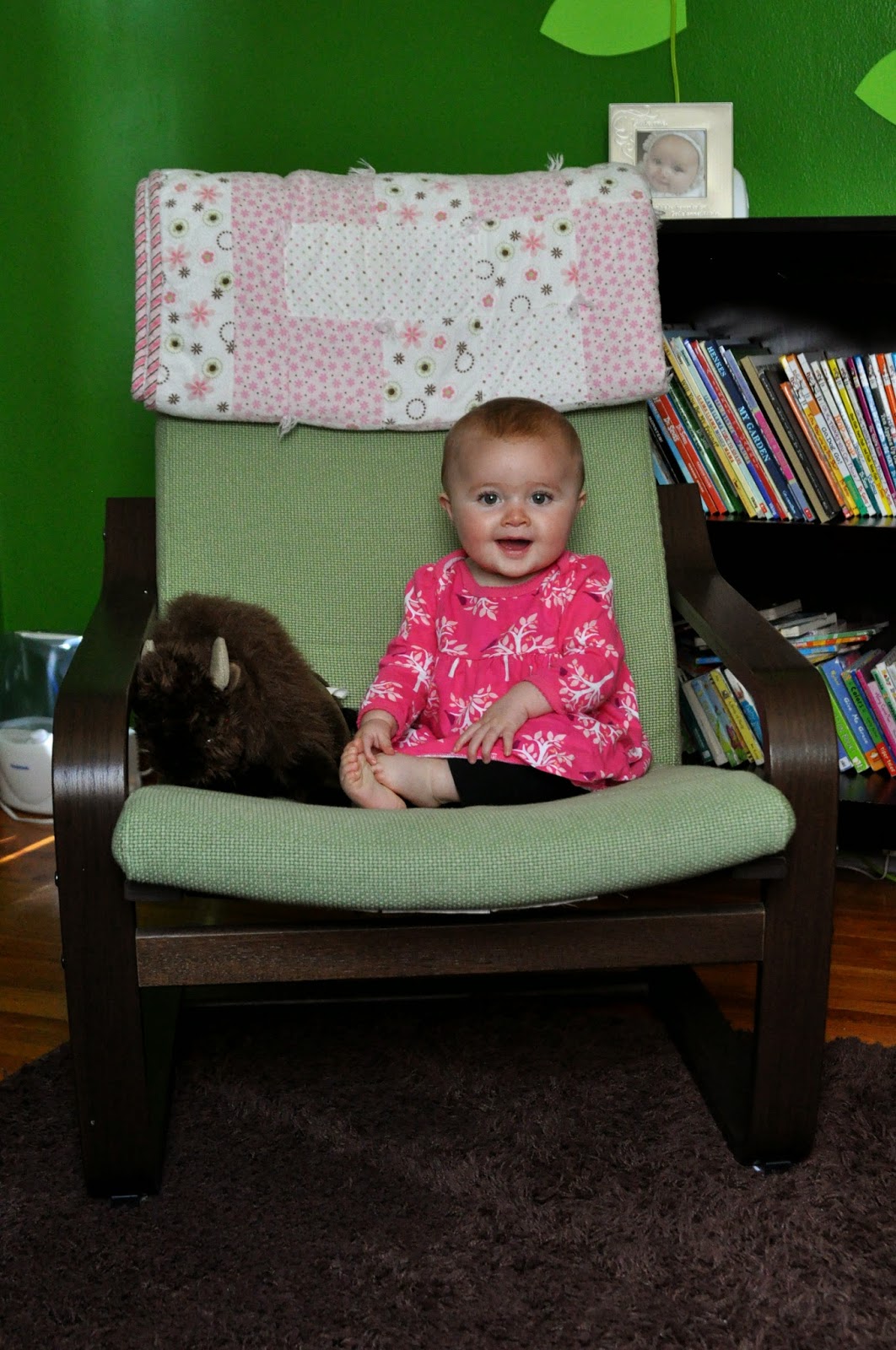 Stats: 19 lbs, .5 oz and 27 inches. Ahh... this was the hard part of the month. I took Baby C in for her 9 month check up and she really didn't grow much between 6 and 9 months. She gained just over a pound and grew just a quarter of an inch (dropping her down to the 23rd percentile in height, way off her growth curve and strange for our babies so far). Her pediatrician was a little worried about her height gain, so she did tested her thyroid. The tests came back normal, but I still can't help but worry about her a little. She's down to the Hopefully she'll go through a growth spurt soon and I'll be able to relax.